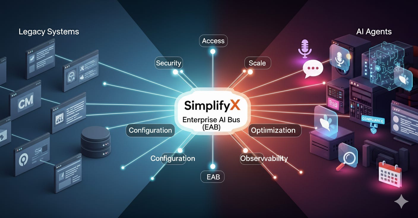 SimplifyX isn’t trying to build the “smartest agent.” It’s building the Enterprise AI Bus (EAB).