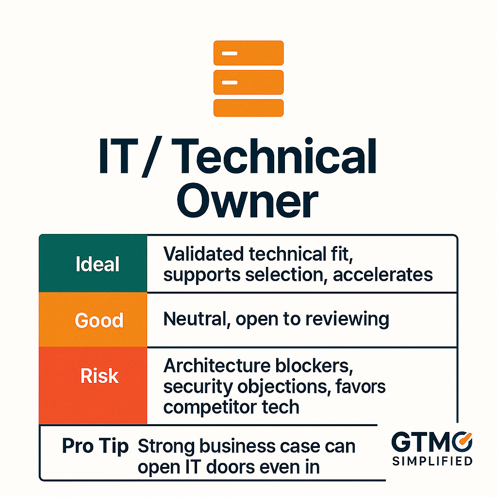 Pro Tip: Secure them early in strategic accounts. They can clear cross-functional roadblocks no one else can.